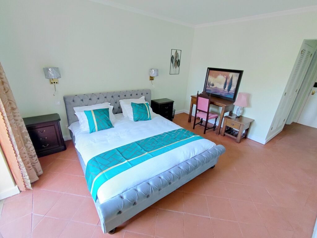 The room’s spacious design and king-size bed promote deep rest, while the large bathroom with walk-in shower and soft lighting completes the feeling of calm, balance and comfort.