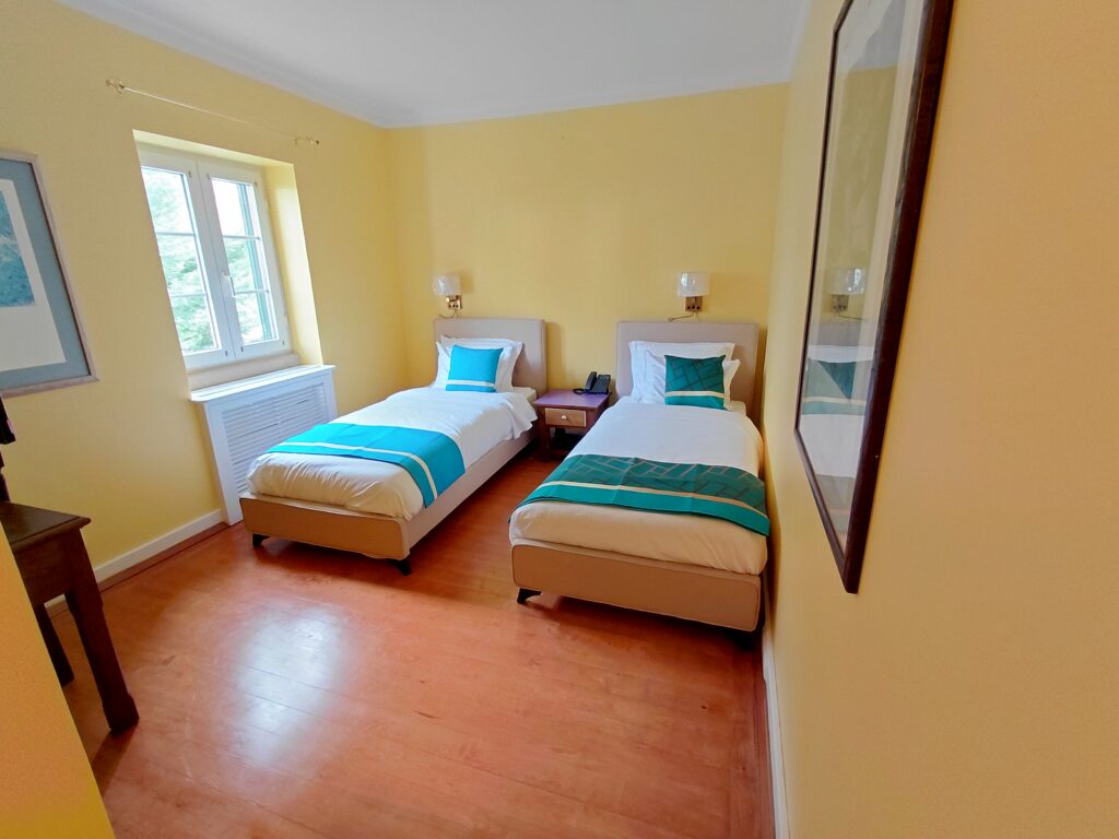 Radiating warmth and sophistication, the Peridoto Room is a first-floor haven in refined yellow tones. Two twin beds offer exceptional comfort, while a window bathes the room in natural light. Airy, graceful, and exquisitely welcoming — an ideal sanctuary to refresh, unwind, and indulge in quiet luxury.